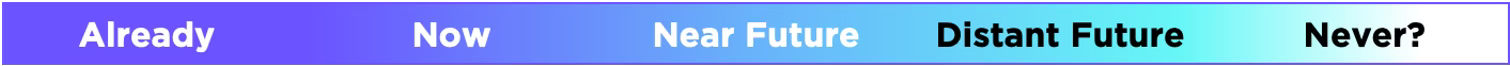 Distant Future: Based on expected innovation rates and the nature of the work (and its complexity), it will take many years until IMs can complete such work well enough to supplant humans. I may be wrong, but I think the unconstrained use of autonomous vehicles (such that they can travel on any thoroughfare to complete any trip) fits this category.